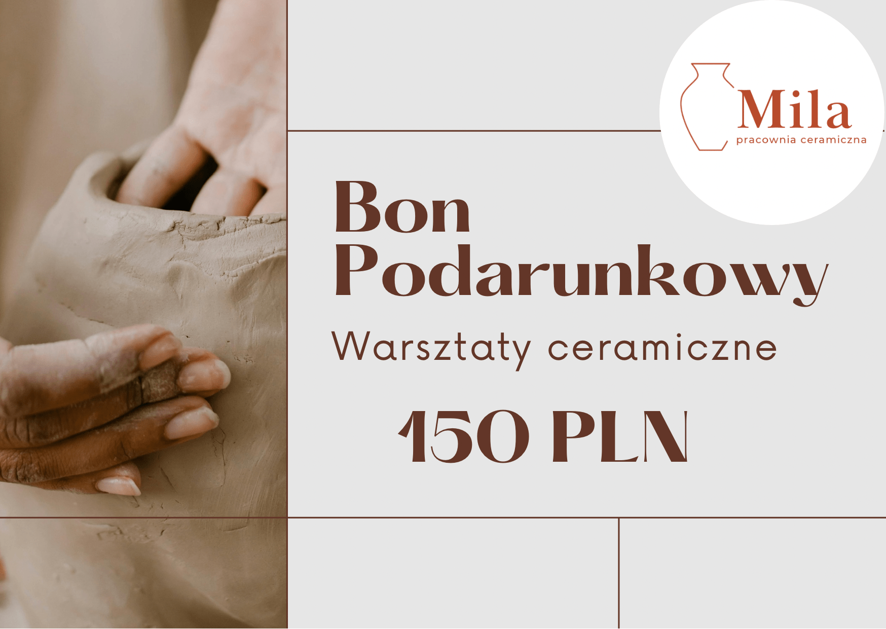 - Realizacja bonu wymaga wcześniejszej rezerwacji terminu drogą mailową mila.ceramik@gmail.com lub telefoniczną 501294462